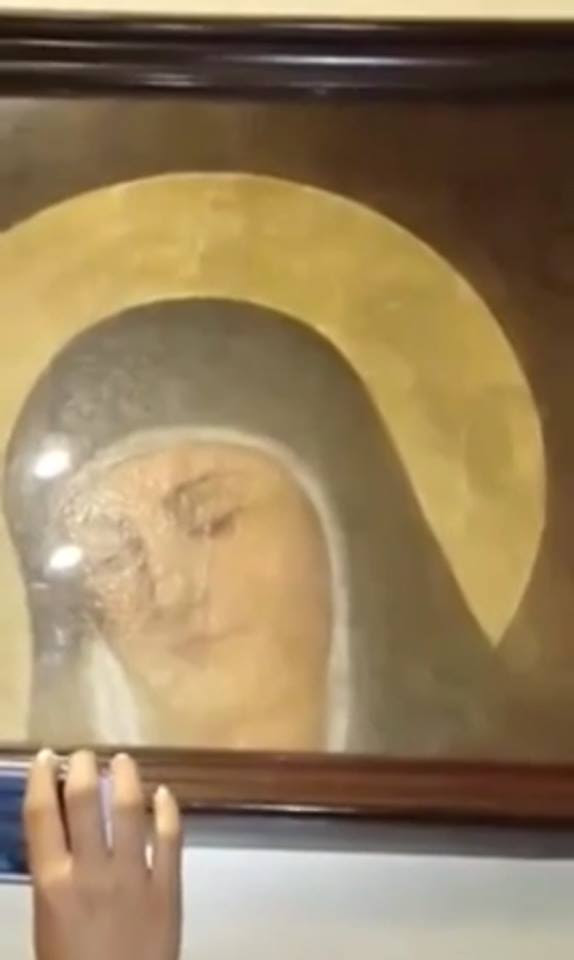Στην αρχή του βίντεο επειδή υπάρχει η αντανάκλαση των φώτων πάνω στην εικόνα κάνει αντίθεση με τα μάτια της εικόνας και στην βιντεοκάμερα και δεν φαίνονται καθαρά τα μάτια στην αγιογραφία.